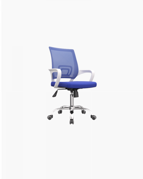 $481,083Espaldar tapizado en malla de nylon. Espuma asiento laminada. Asiento tapizado en tela malla. Brazos de Polipropileno fijo. Mecanismo Basculante. Soporte lumbar fijo. Base cromada de 5 puntas. Ruedas de Goma.